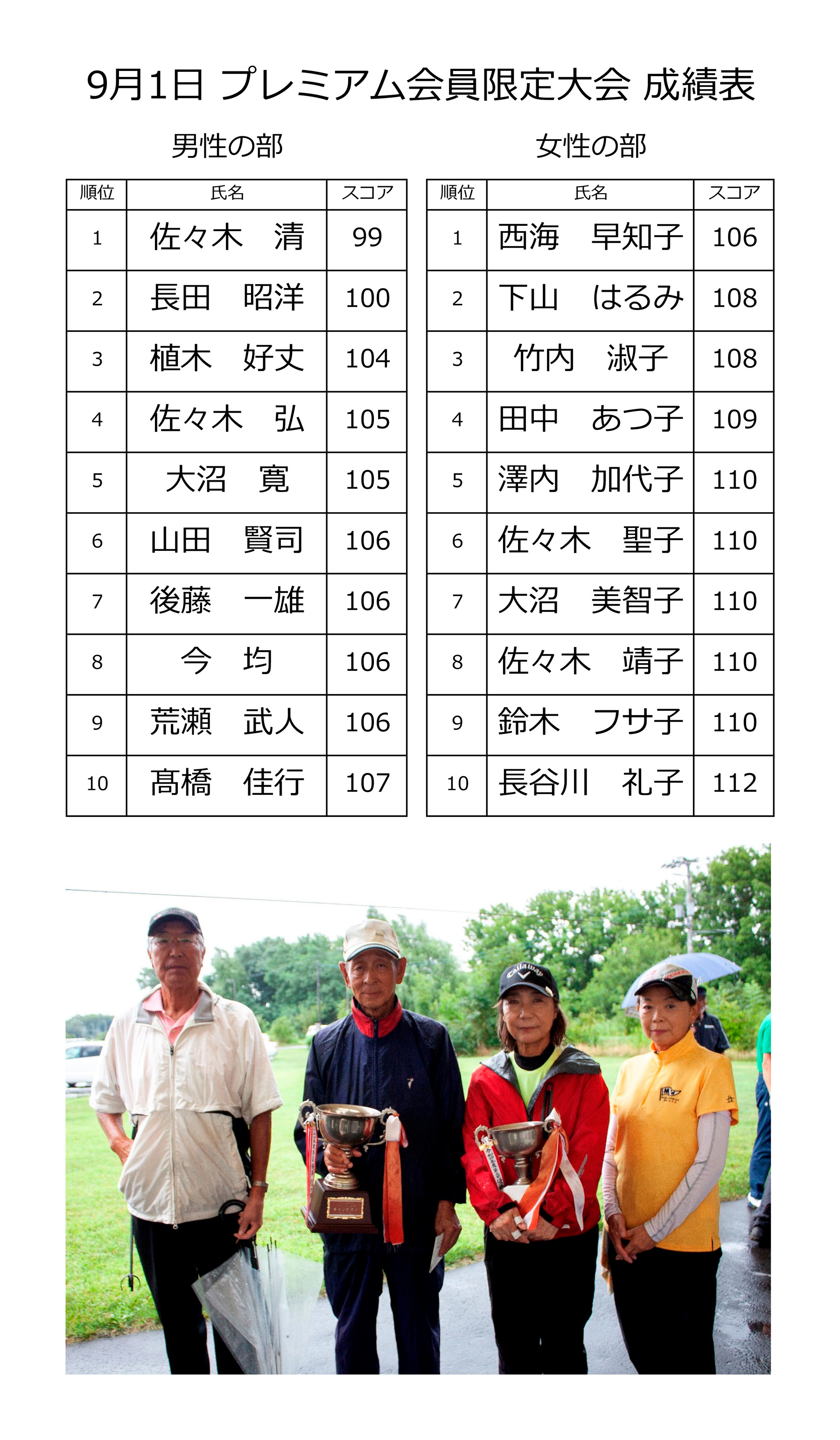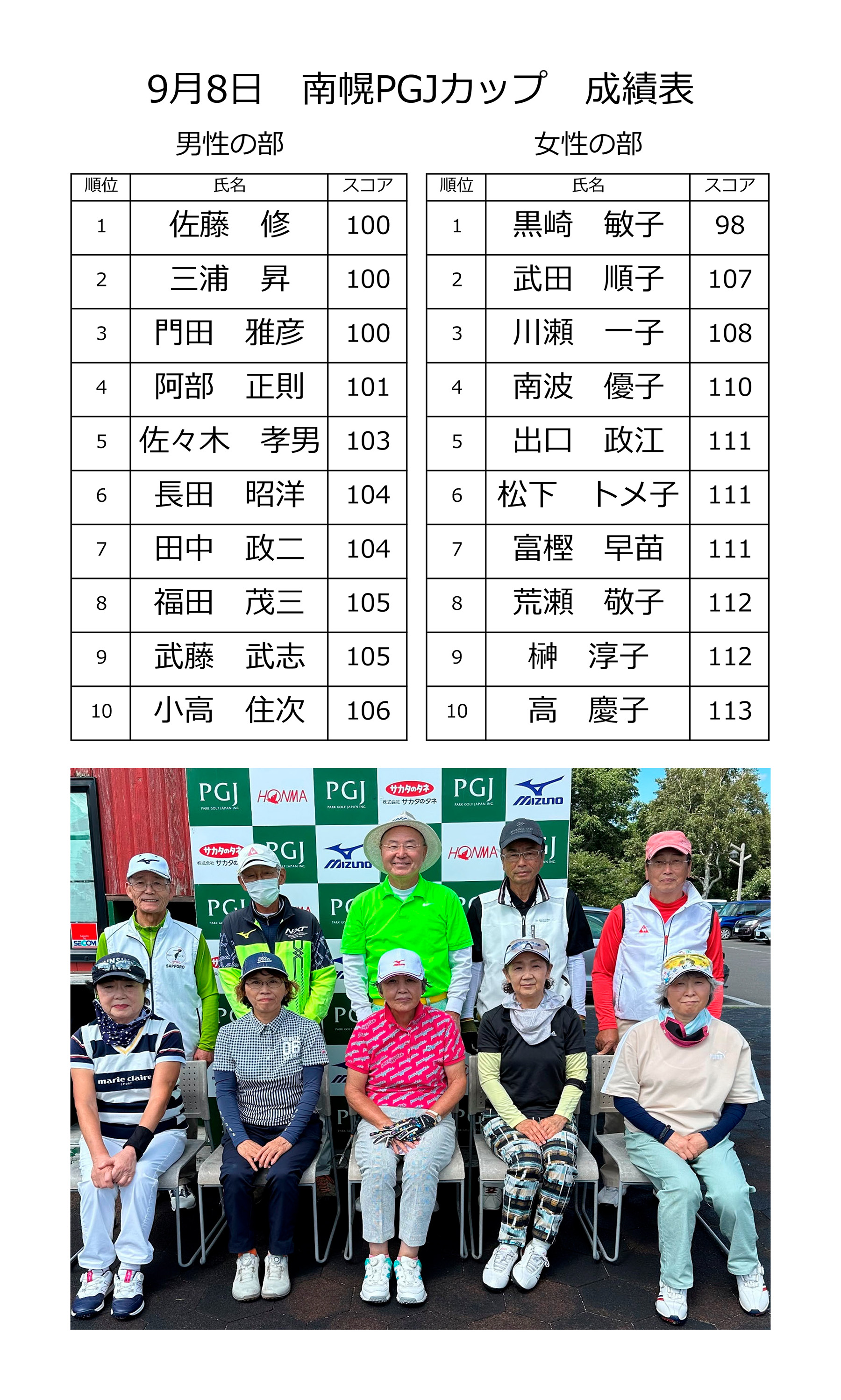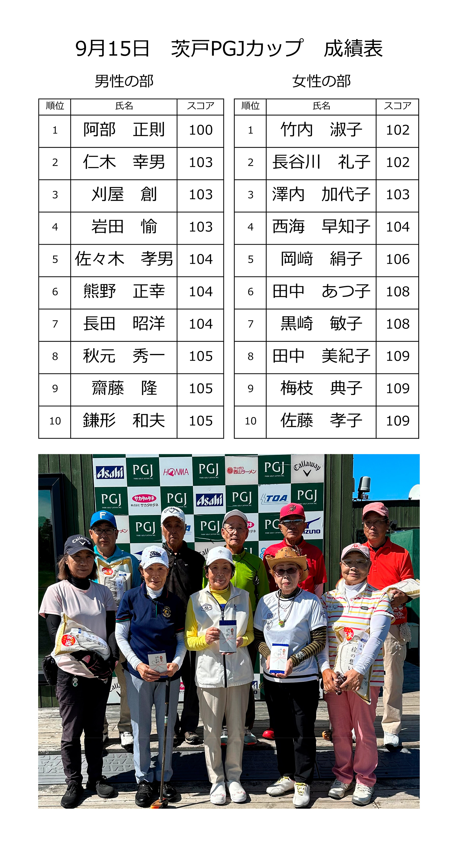 | 09月08日(金) | 9月 PGJカップ | ¥2,000 | オープン大会・食事なし | 結果 |