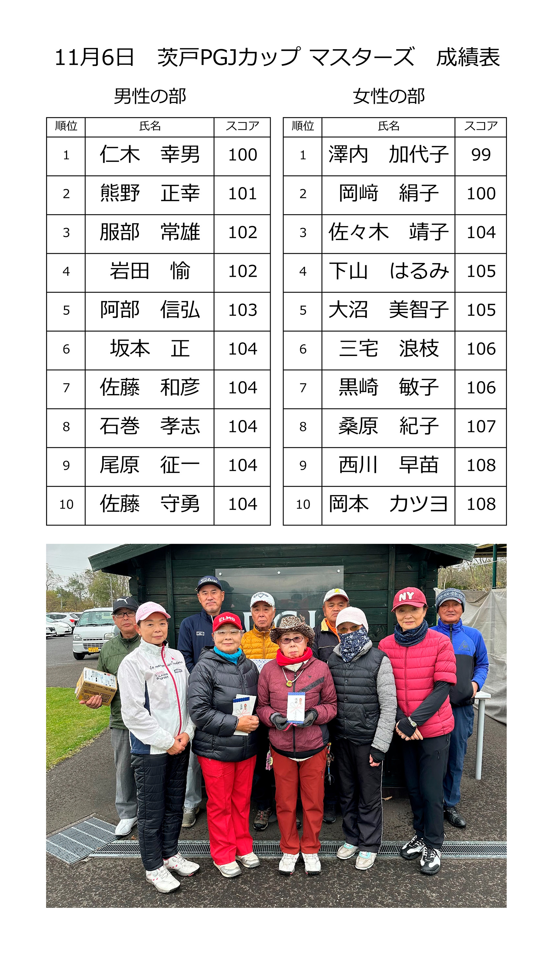 | 11月06日(月) | 11月 PGJカップ マスターズ | ¥2,000 | オープン大会・食事なし | 結果 |