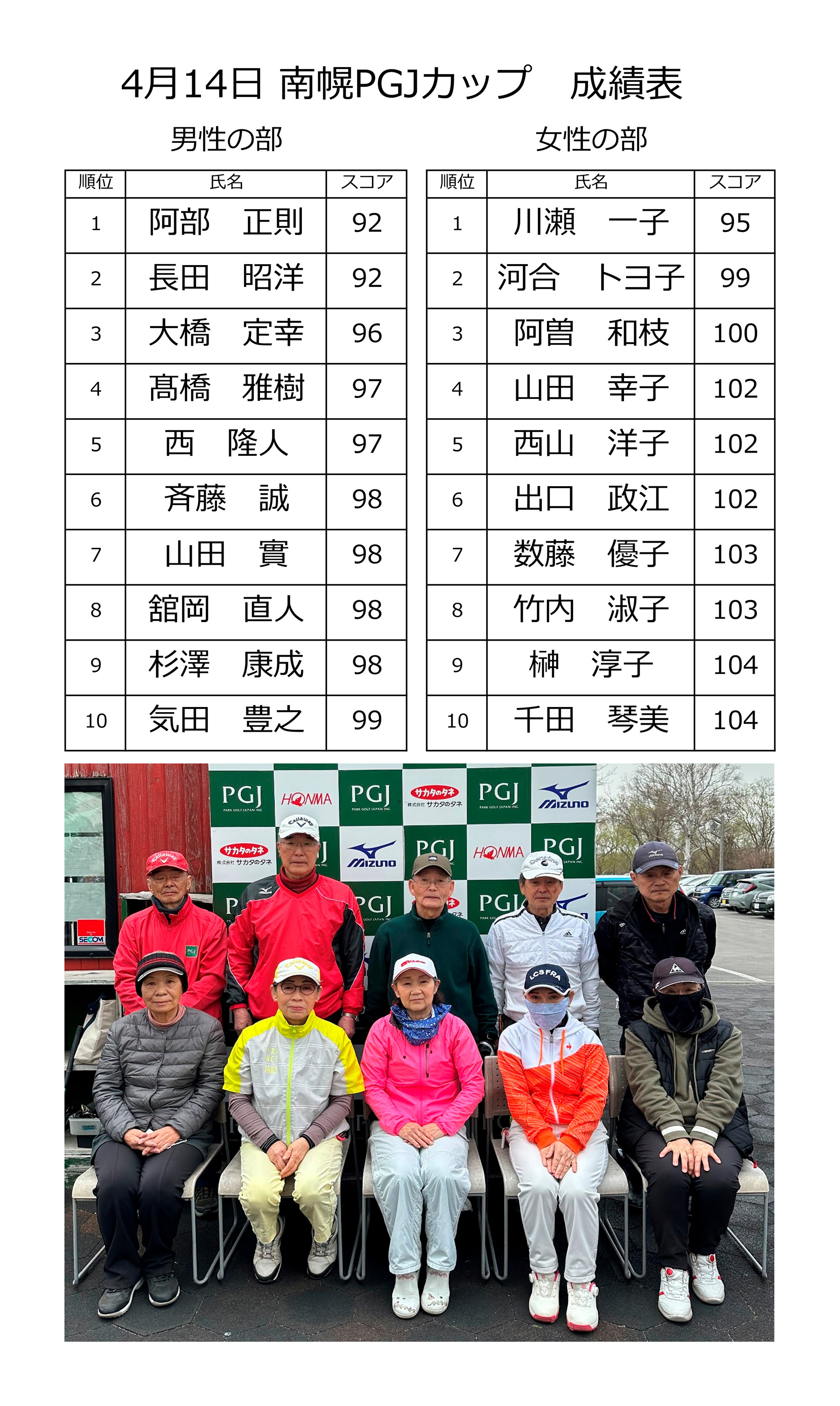 | 04月14日(金) | 4月 PGJカップ | ¥2,000 | オープン大会・食事なし | 結果 |
