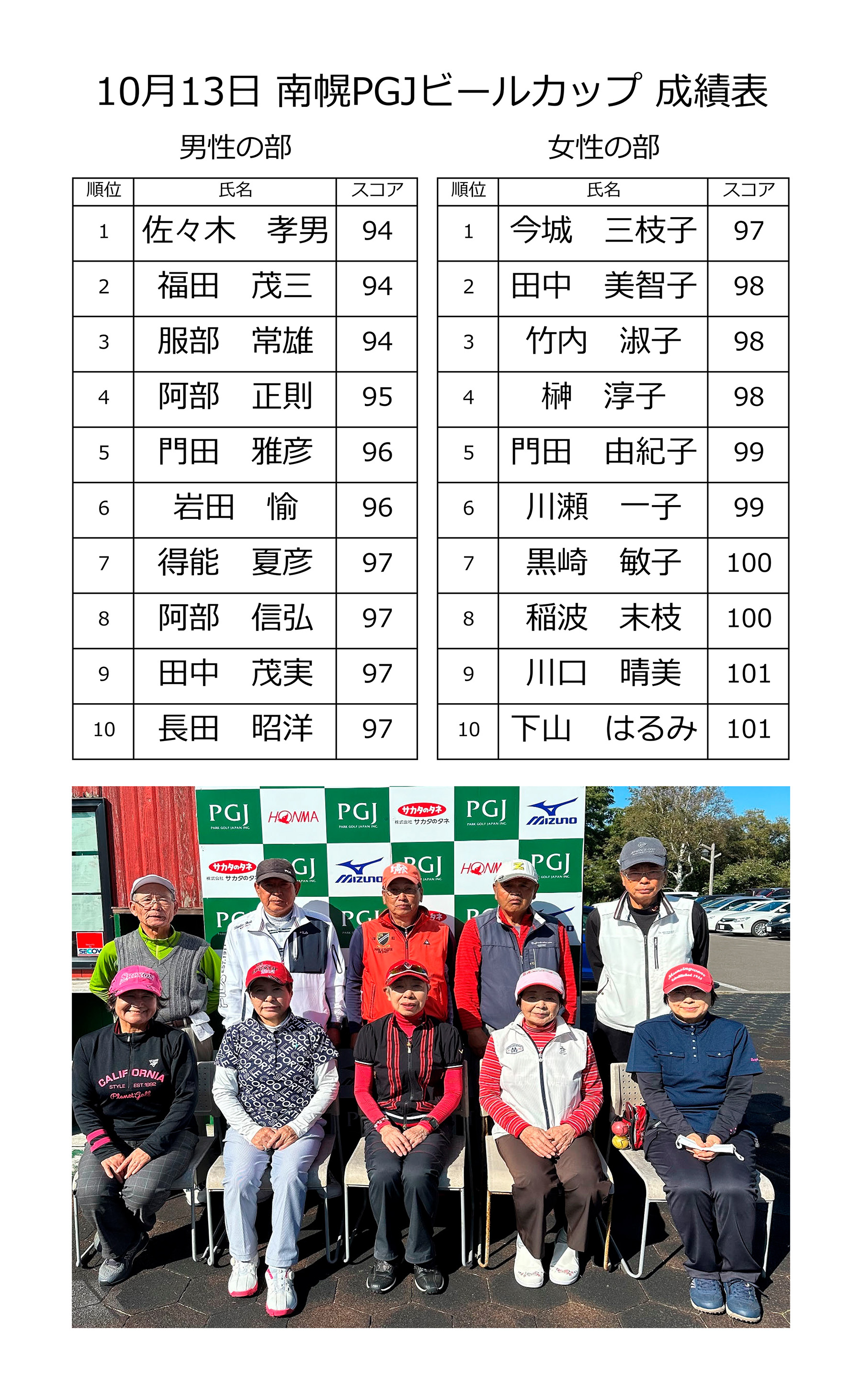 | 10月13日(金) | 10月 PGJカップ | ¥2,000 | オープン大会・食事なし | 結果 |