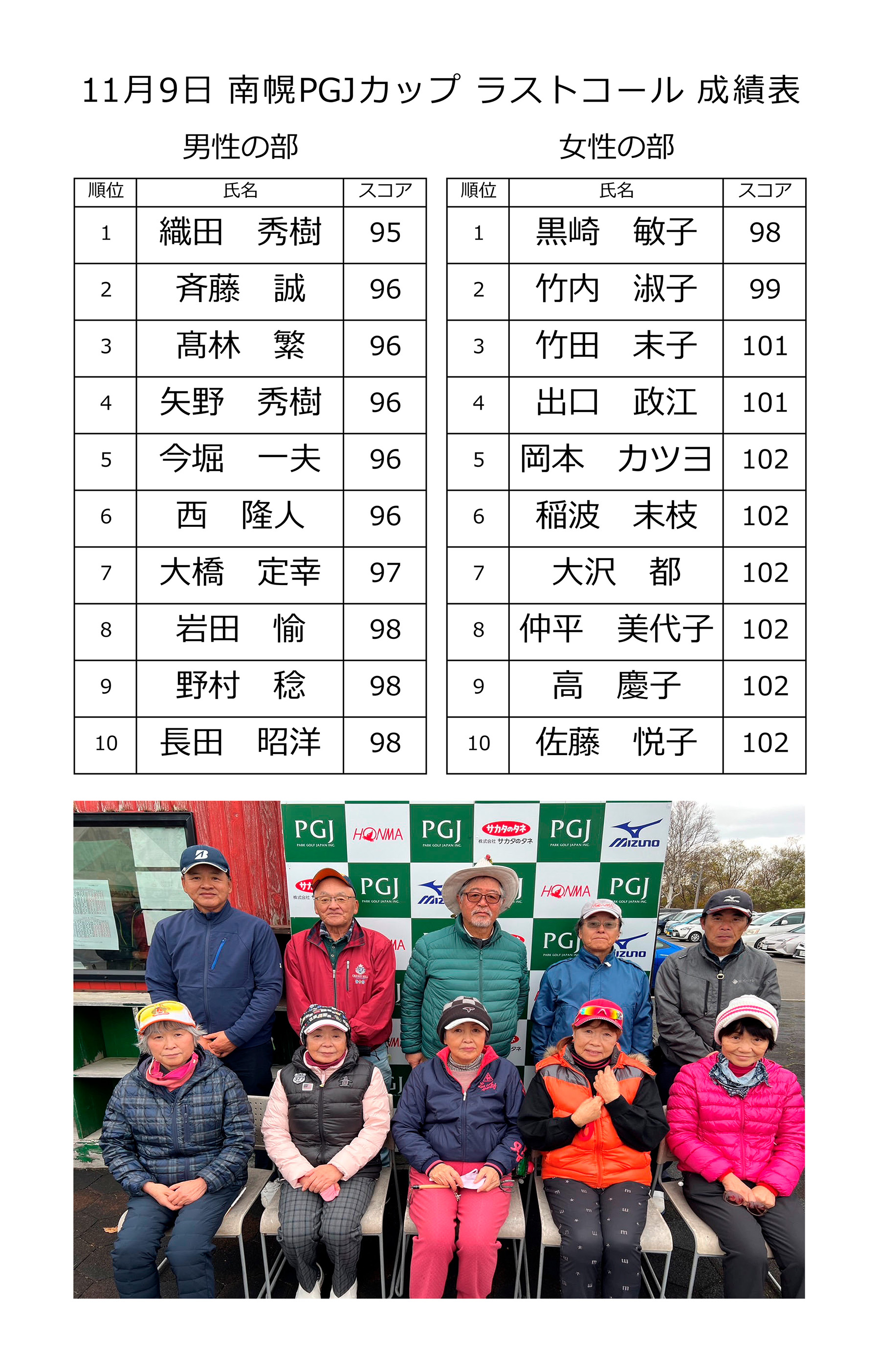 | 11月09日(木) | 11月PGJカップ ラストコール | ¥2,000 | オープン大会・食事なし | 結果 |